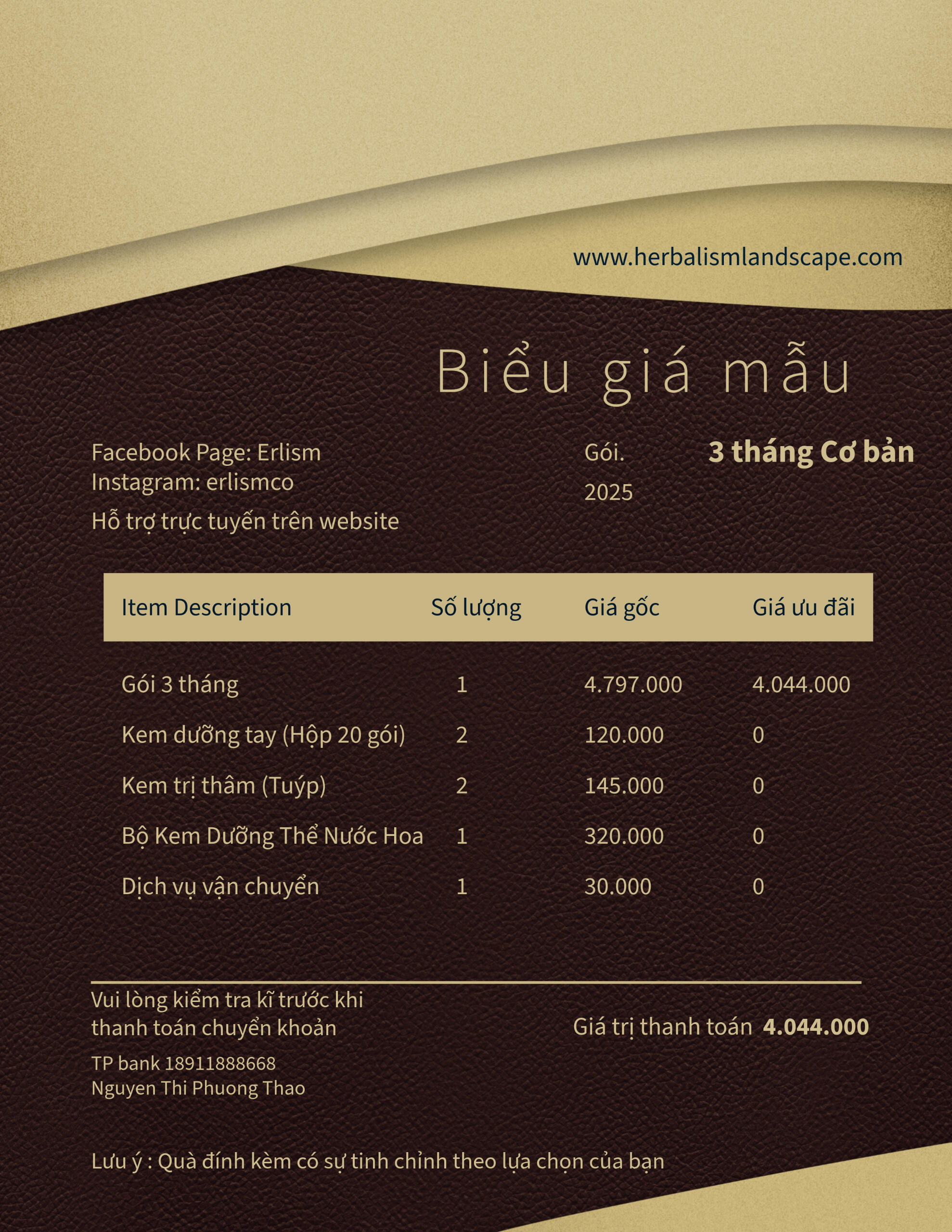 Giá niêm yết: 4.797.000 — tiết kiệm 753.000Ở chặng tiếp theo này, các vật phẩm vẫn được giữ trọn tinh thần: vừa đủ, tinh tế, và sâu đúng mức – để tiếp tục nâng đỡ nền chuyển hoá mà cơ thể bạn đã khởi tạo.